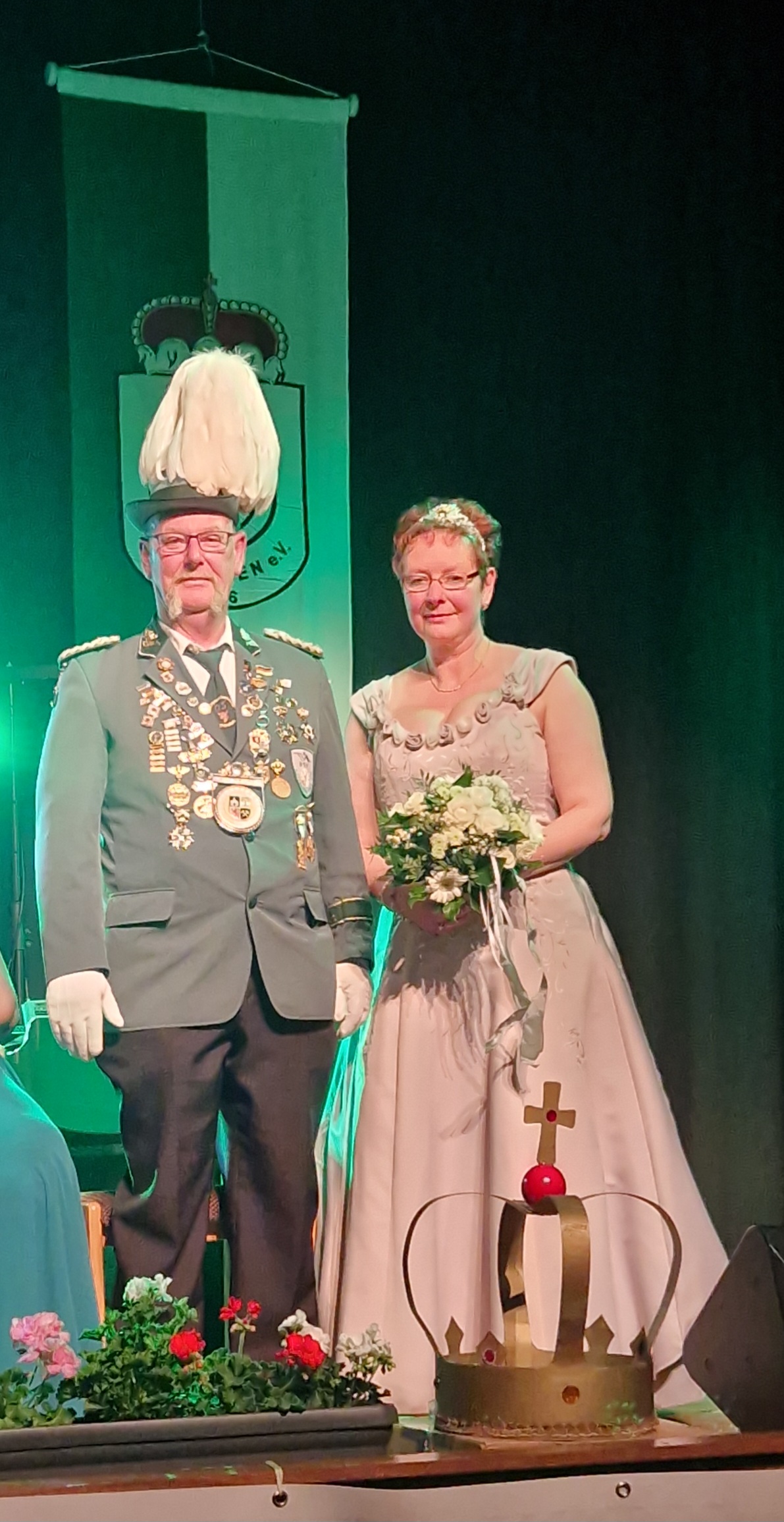wenn vorhanden in Schützentracht, ansonsten weißes Oberteil und schwarze Hose/Rock